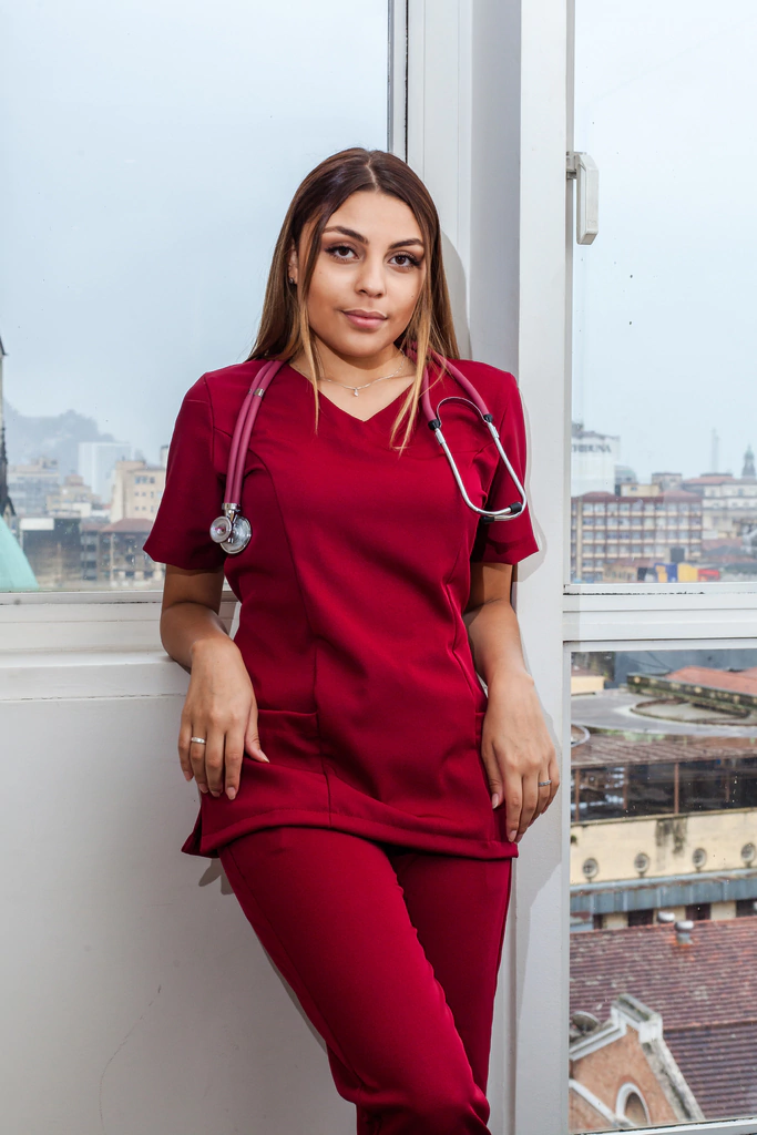Pijama Cirúrgico em tecido microfibra gabardine. Possui bolsos anteriores na blusa e ajuste nas costas. Calça com regulador na cintura, bolsos anteriores, e opcionalmente a barra com elástico.